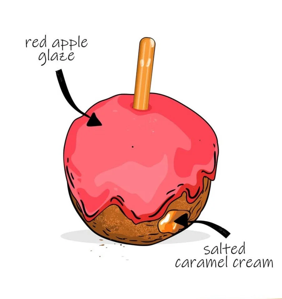 A farm-fresh twist on a fall fair classic! Our pillowy brioche donut is filled with salted caramel cream, dunked in a shiny red apple glaze, and finished with a pretzel stem. Inspired by Appleton Farms — one of the oldest farms in America — It’s a caramel apple you don’t gotta break your teeth on.