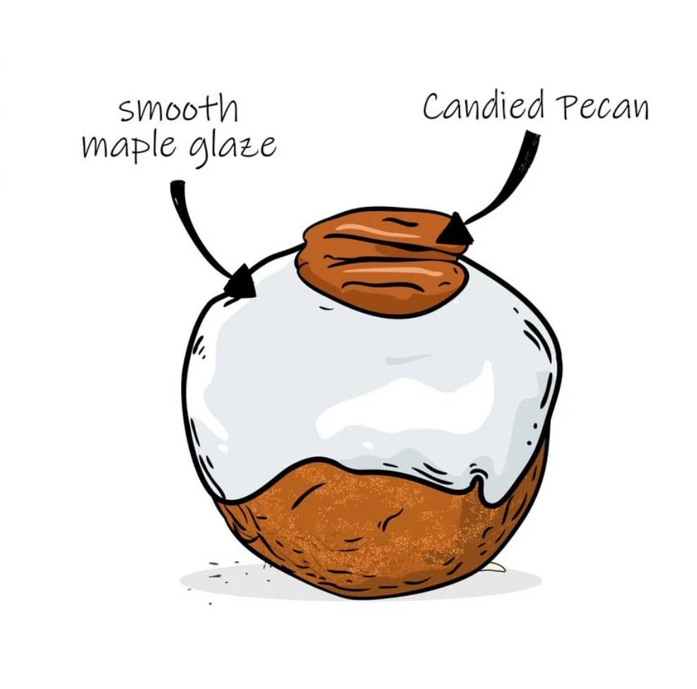 Our old-fashioned poppy seed cake donut takes a sweet trip to the sugar shack — dunked in smooth maple glaze and finished with a perfect pecan half on top. A cozy, nutty bite that tastes like fall in New England.