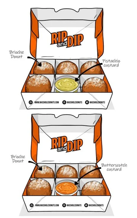 Five fresh brioche donut holes lightly dusted with powdered sugar and served with a side of our house-made custard (pistachio or butterscotch). No toppings, no distractions—just soft, fresh brioche made for tearing and dunking. This is how we eat them at the shop… and yeah, we fight over the custard.